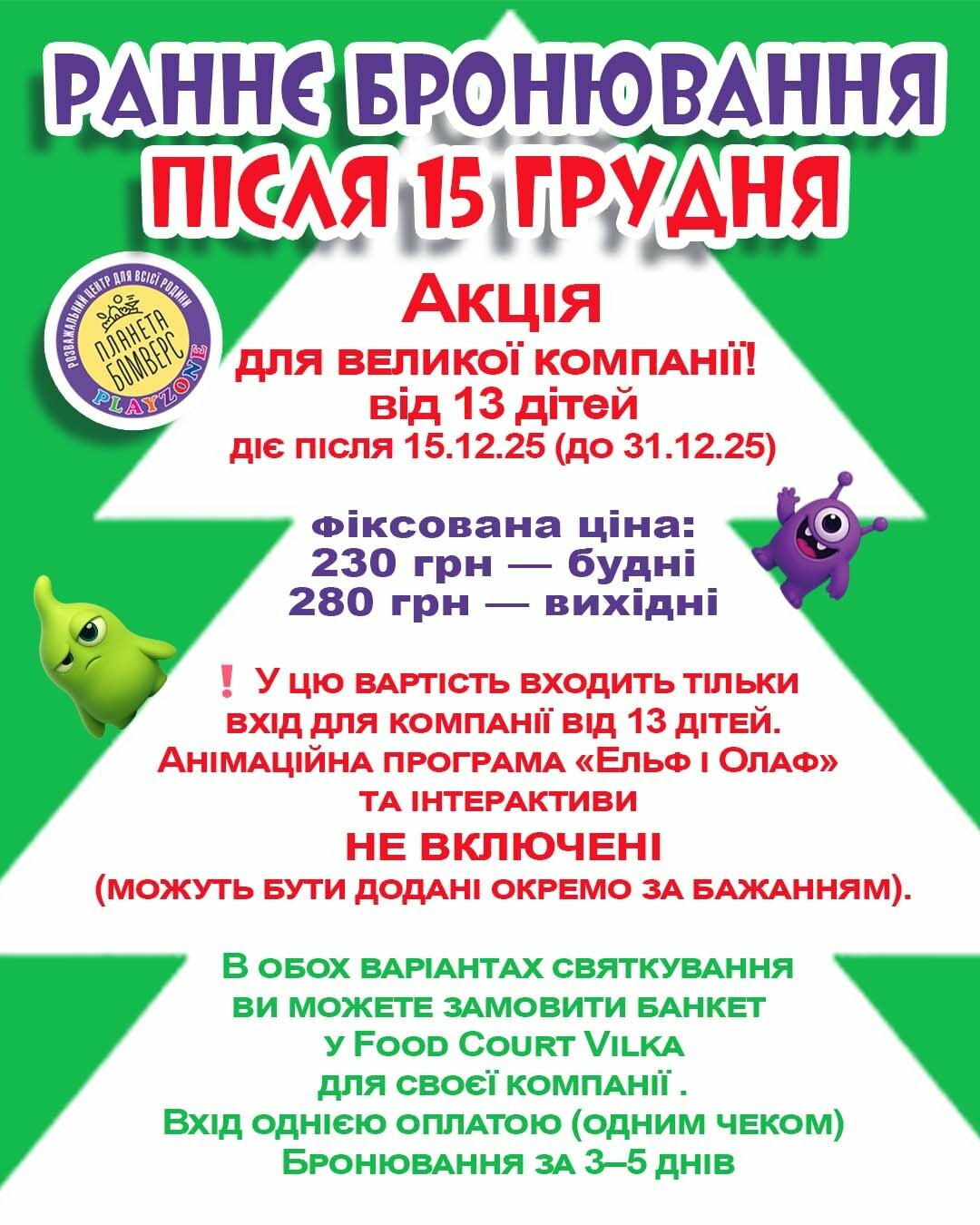 Мы поможем вам создать лучший праздник для вашего ребенка, заполнив каждую минуту радостью и весельем. Забронировать праздник можно за 5-7 дней до события! Подарите своему ребенку планету эмоций и празднований вместе с Планетой БОМВЕРС!